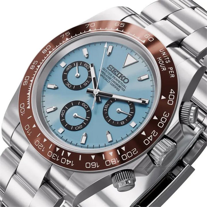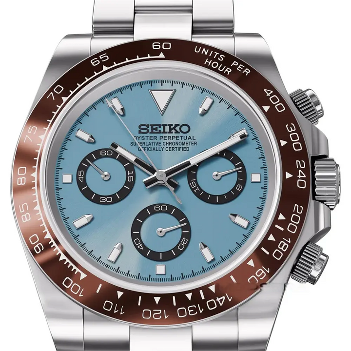 Inspired by the iconic Daytona and powered by the prestigious Seiko VK63 hybrid movement, the Seiko Mod Daytona is a 40 mm high-end watch merging excellence and affordability.