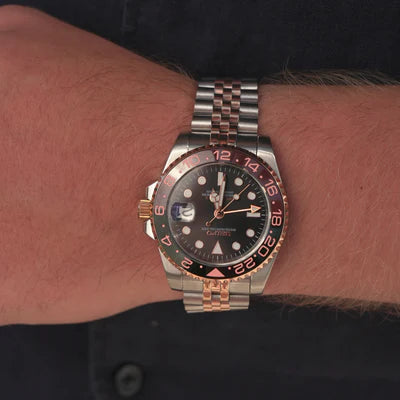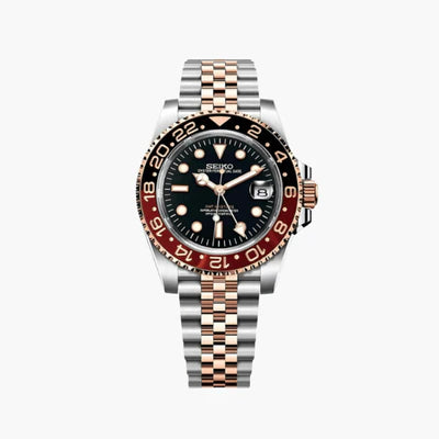 Inspired by the iconic GMT design and powered by the renowned Seiko NH34 automatic movement, we proudly introduce the Seiko Mod GMT. This 40 mm timepiece represents the perfect blend of high-end quality and accessibility, offering exceptional craftsmanship at an attainable price.