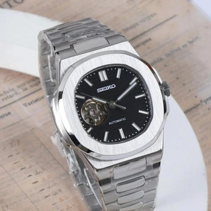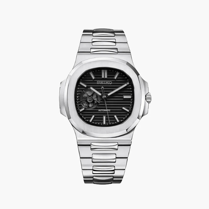 Inspired by the iconic Nautilus and powered by the Seiko NH35 automatic movement, the Seiko Mod Nautilus is a 41 mm high-end watch uniting excellence and accessibility.