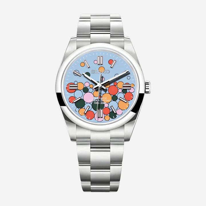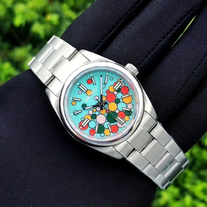 Inspired by the iconic Oyster perpetual and powered by the Seiko NH35 automatic movement, the Seiko Mod Oyster is a 39 mm high-end watch uniting excellence and accessibility.
