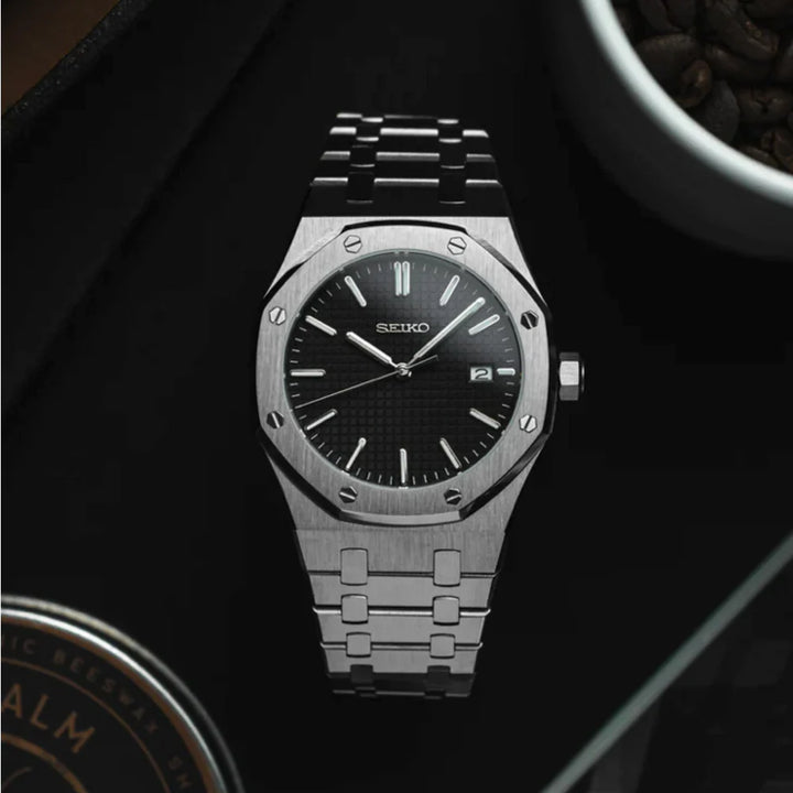 Inspired by the iconic Royal Oak and powered by the Seiko NH35 automatic movement, the Seiko Mod Royal Oak is a 41 mm high-end watch uniting excellence and accessibility.