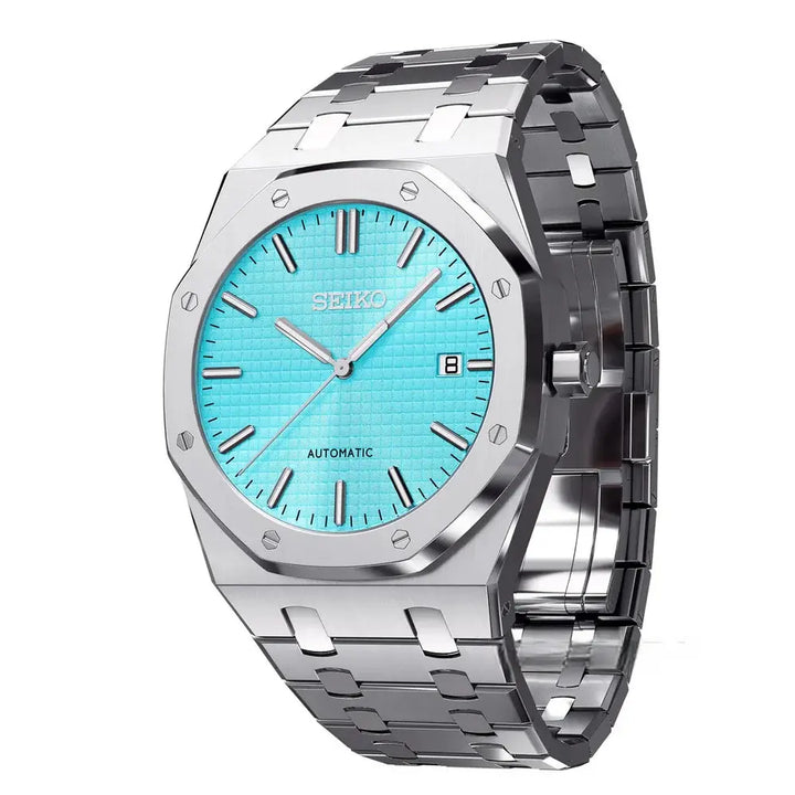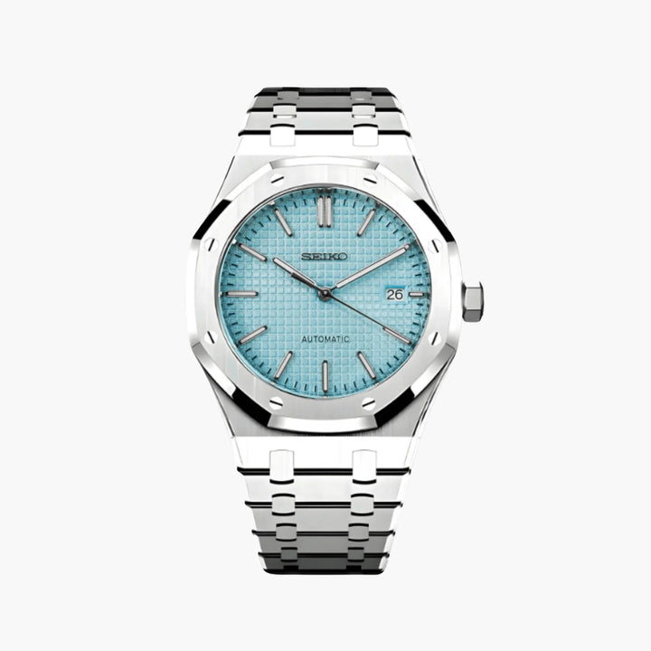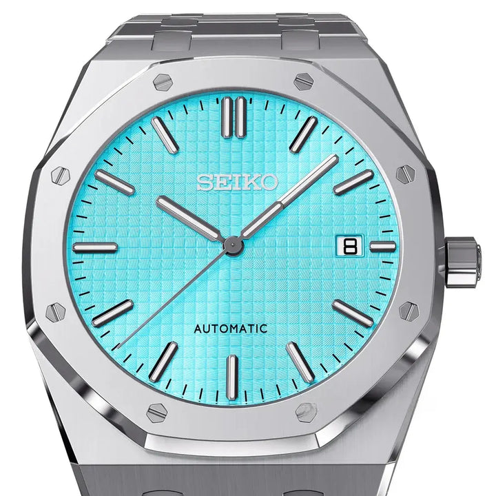 Inspired by the iconic Royal Oak and powered by the Seiko NH35 automatic movement, the Seiko Mod Royal Oak is a 41 mm high-end watch uniting excellence and accessibility.