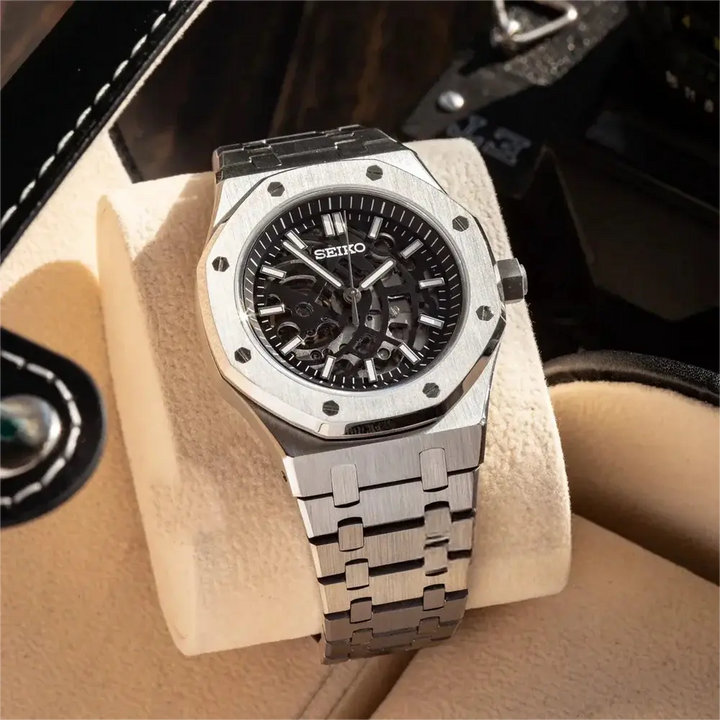 Inspired by the iconic Royal Oak and powered by the Seiko NH35 automatic movement, the Seiko Mod Royal Oak is a 41 mm high-end watch uniting excellence and accessibility.