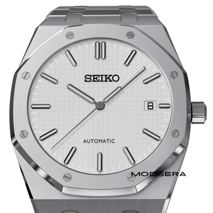 Inspired by the iconic Royal Oak and powered by the Seiko NH35 automatic movement, the Seiko Mod Royal Oak is a 41 mm high-end watch uniting excellence and accessibility.