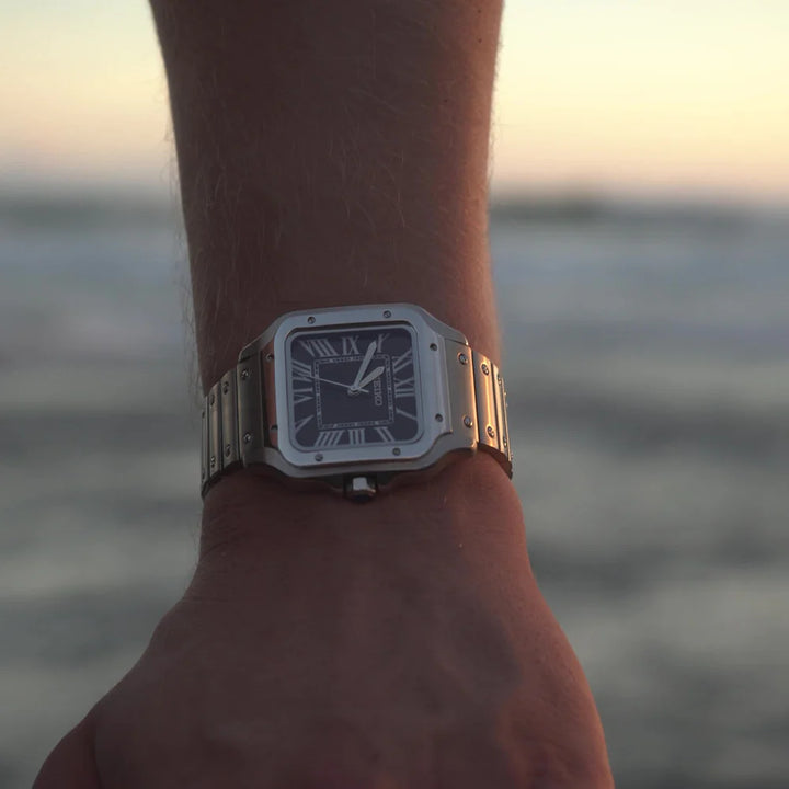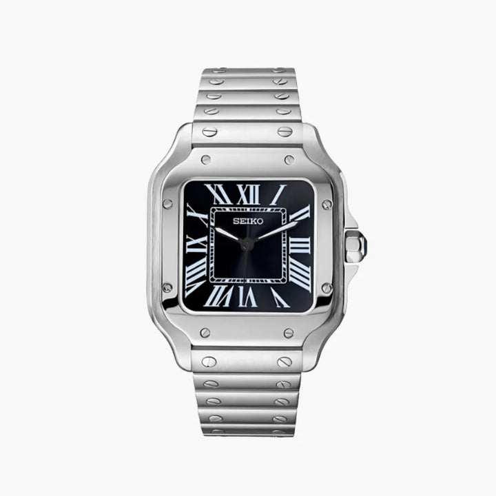 Inspired by the iconic Santos and powered by the Seiko NH35 automatic movement, the Seiko Mod Santos is a 38 mm high-end watch uniting excellence and accessibility.
