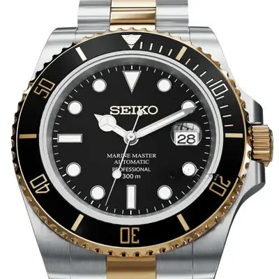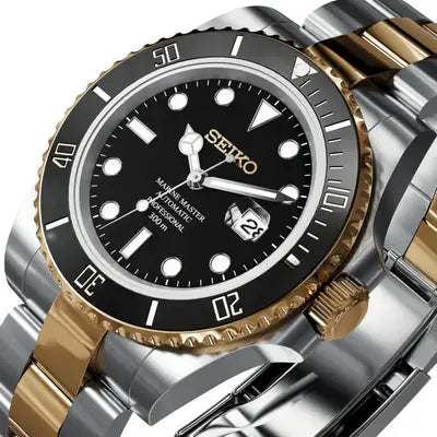 Inspired by the iconic Submariner design, the Seiko Mod Submariner features the renowned Seiko NH35 automatic movement. This 40 mm timepiece offers high-end quality and precision, blending excellence with accessibility in a sleek, modern watch.