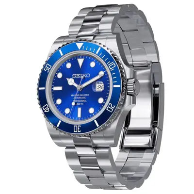 Inspired by the iconic Submariner design, the Seiko Mod Submariner features the renowned Seiko NH35 automatic movement. This 40 mm timepiece offers high-end quality and precision, blending excellence with accessibility in a sleek, modern watch.