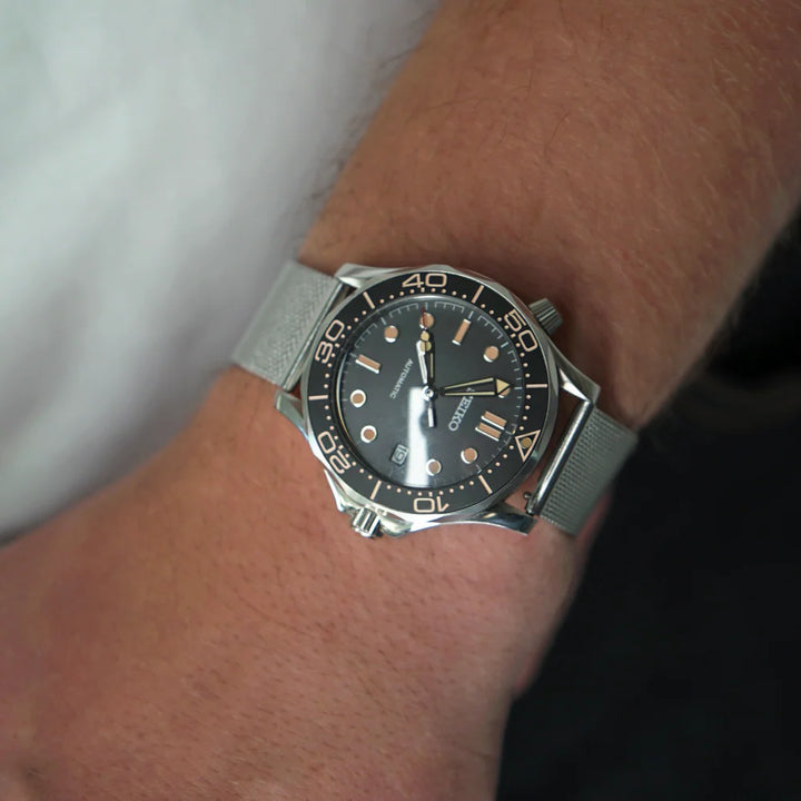 Inspired by the iconic Seamaster and powered by the Seiko NH35 automatic movement, the Seiko Mod Seamaster is a 41 mm high-end watch uniting excellence and accessibility.