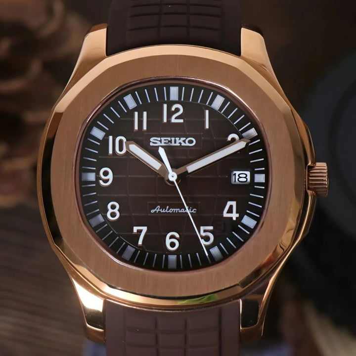 Inspired by the iconic Nautilus and powered by the Seiko NH35 automatic movement, the Seiko Mod Nautilus is a 41 mm high-end watch uniting excellence and accessibility.